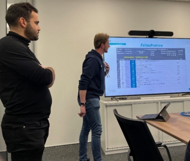 Vorbereitet wurden die Studierenden durch Schulungen zu Methoden des Arbeitsdatenmanagements – insbesondere zur REFA-Arbeitsablaufanalyse und Zeitaufnahmetechnik. Mit diesen Werkzeugen ermittelten sie Daten zu Arbeitszeiten, Ablaufarten und Prozessschritten, werteten diese systematisch aus und entwickelten konkrete Verbesserungsvorschläge.