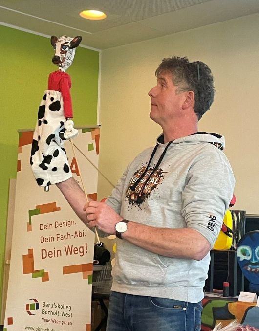 Diese Projektarbeit eröffnet erstmals eine ganz neue Dimension, weil nicht nur Bilder in Figuren transferiert werden, sondern weil die Schülerinnen und Schüler erstmals auch eigene Drehbücher schreiben und ihre Ergebnisse in einem Puppenspiel präsentieren müssen.